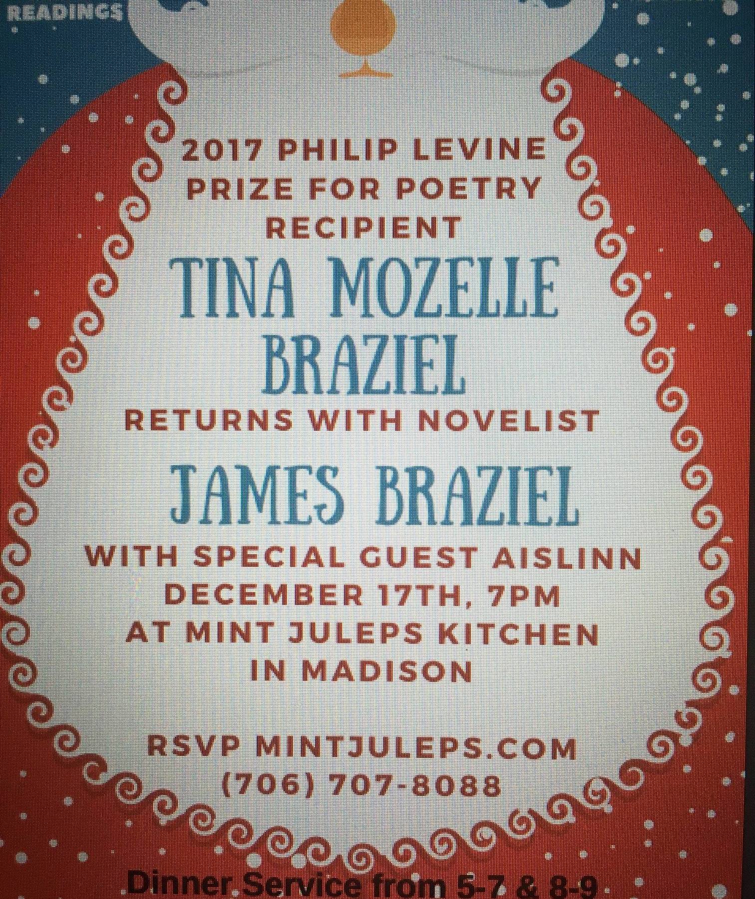 I’m looking forward to reading with Jim Braziel in Madison on the 17th and in Monticello on the 18th!